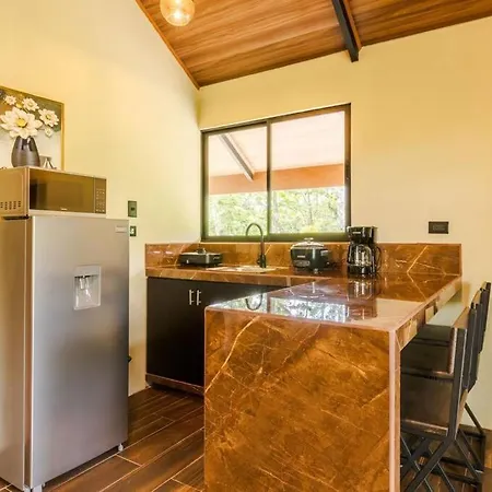 Kun 1 km fra Fortuna Park, tilbyder Cabana Rincon Verde - La Fortuna ferielejlighed værelser med udsigt over haven. Værelserne indeholder et køkken som har en mikrobølgeovn, kaffemaskiner/tekedler og et køleskab.